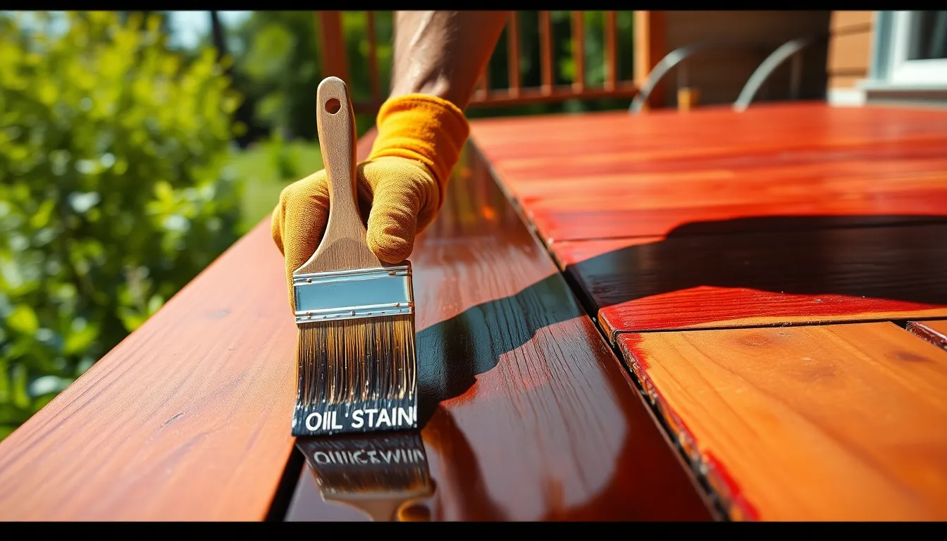Reapplication of deck stain enhances protection and aesthetics. Homeowners should reapply stain every one to three years, depending on weather conditions and wear. Performing a water test can determine the need for reapplication; if water beads up, the stain remains effective. If water soaks into the wood, it’s time for a new coat. Preparing the surface by cleaning and sanding before applying a new layer is essential for optimal adhesion. Applying stain in temperatures between 50°F and 90°F ensures better penetration and drying. Keeping track of usage and environmental factors helps maintain a beautiful and durable stained deck.
